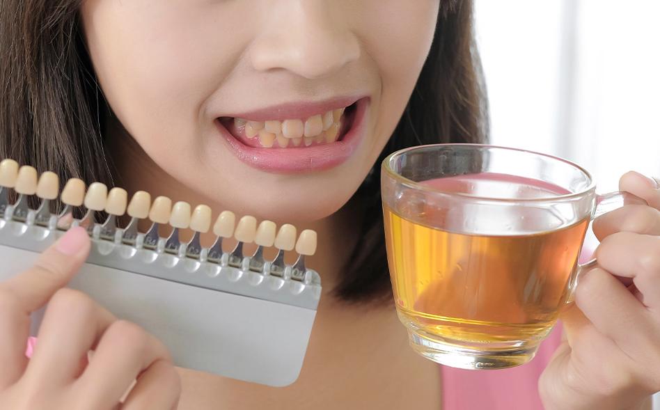 Discolouration can appear on the surface of the enamel (extrinsic) or within the tooth structure itself (intrinsic). Causes may include: